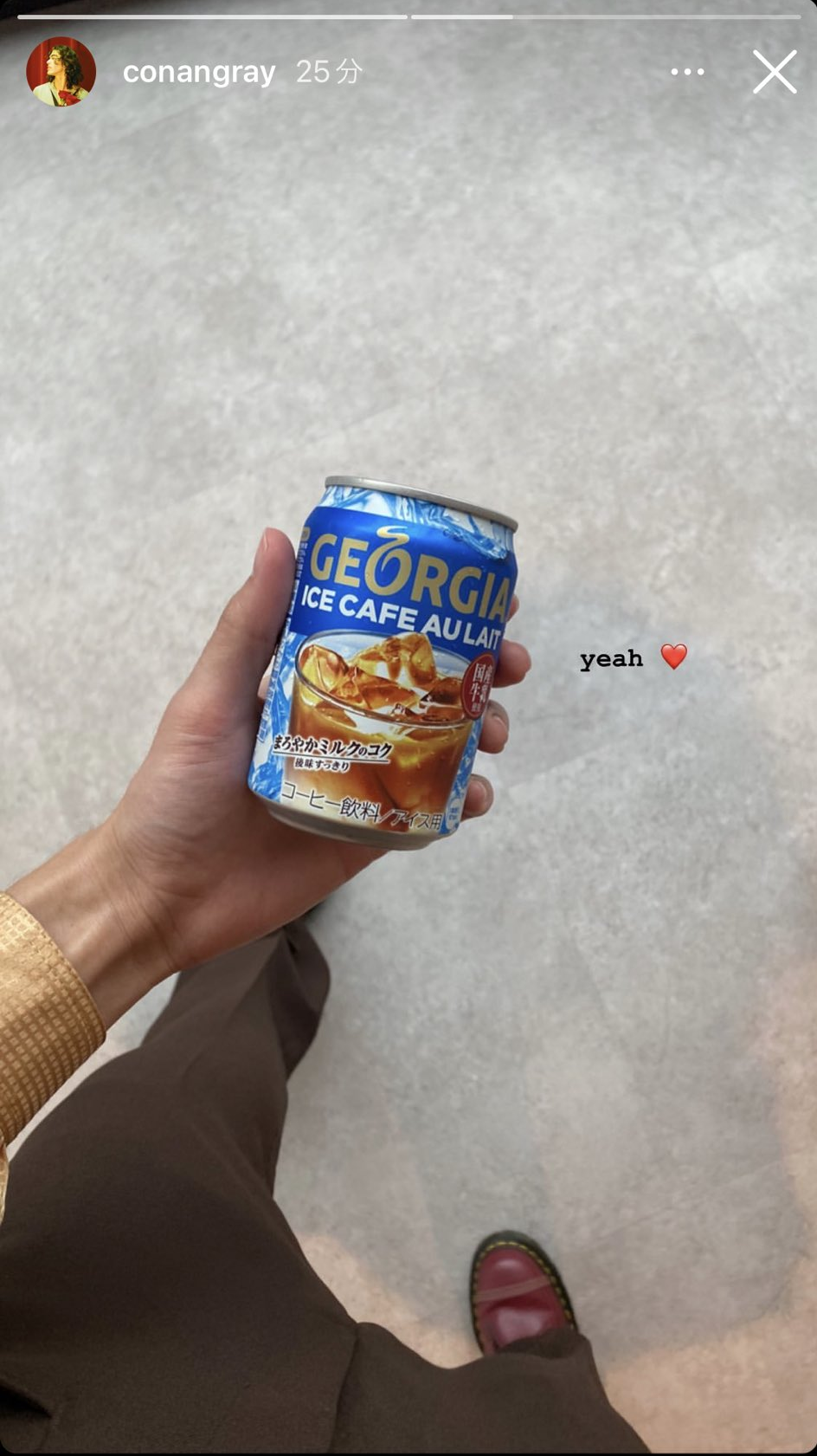 アイスカフェオレは会社の自動販売機で売っていたのですが、取材の合間に買っては嬉しそうにしている姿が印象的でした。ストーリーズに♡をつけてこのアイスカフェオレの写真を投稿するほど気に入った様子!