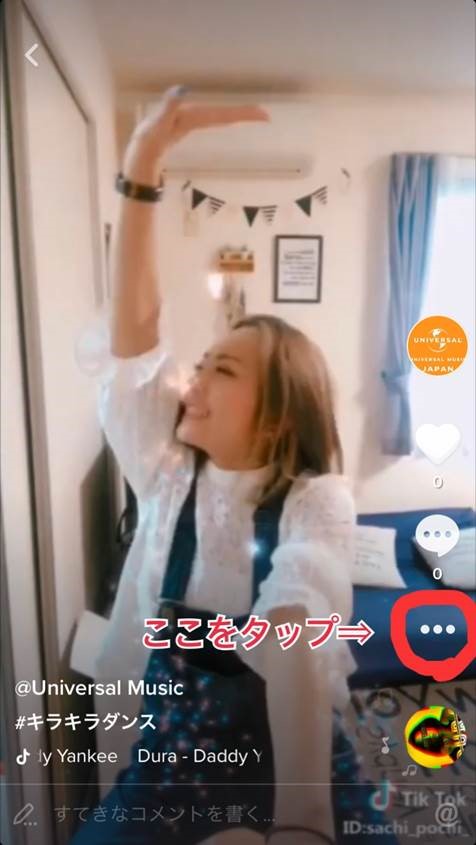 ① TikTokでダディー・ヤンキーの「デュラ」に合わせて#キラキラダンスを踊った動画を投稿
