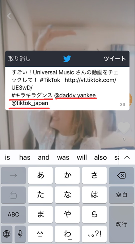 ② 投稿した動画を、下記の文言を入れてTwitterでシェアするだけで応募完了!