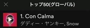 ダディー・ヤンキー「コン・カルマ」が、Spotify&Shazamのグローバルチャート1位! 2019.03.25 TOPICS 先週、James Cordenの番組にて史上初のスペイン語楽曲披露の効果あって・・・ https://www.youtube.com/watch?v=BCITSCQWDfI 遂に! Spotify Globalチャート1位! Shazam Globalチャート1位!