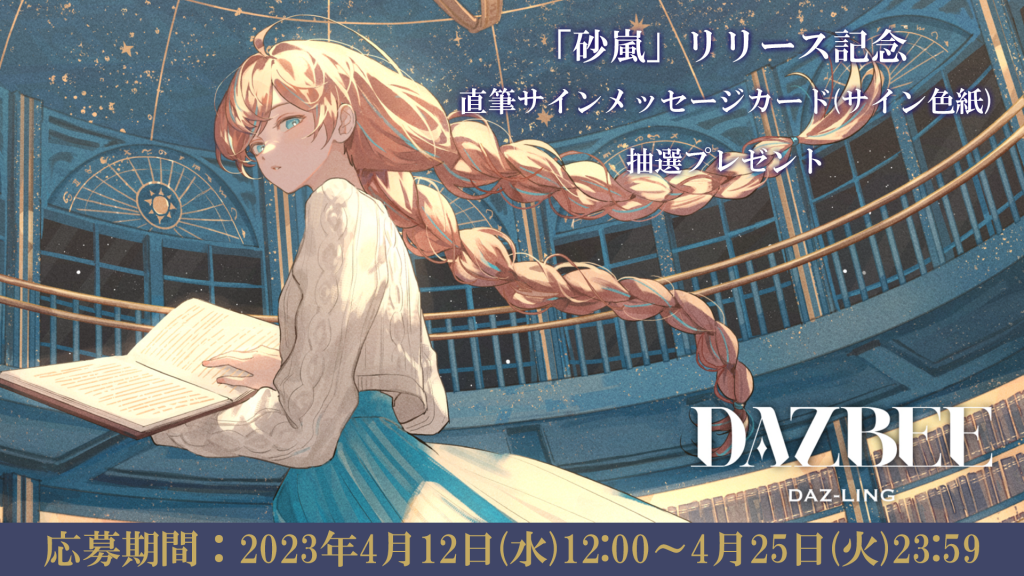 「砂嵐」リリース記念!ダズビーの直筆サインメッセージカード(サイン色紙)を抽選で10名様にプレゼント!