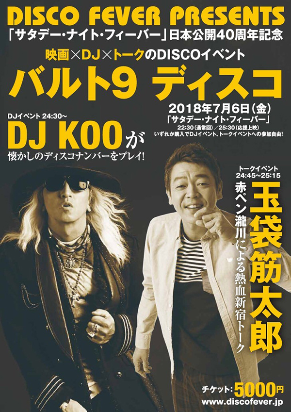 映画「サタデーナイトフィーバー」の日本での公開40周年を記念し、東京都新宿区の映画館、新宿バルト9にて≪バルト9 ディスコ≫と称し、新宿バルト9の13Fフロア3シアターにて、本作の上映やDJによるディスコ・イベント 、トークイベントなどさまざまなイベントを実施!!