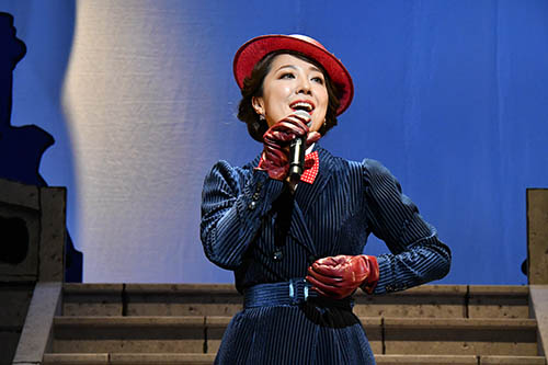 そしてイベントの終盤では、谷原から日米メリー・ポピンズの2人へサプライズプレゼントが贈られた!メリー・ポピンズのキーアイテムである“傘”を谷原が手に取ると、傘が花束に大変身!2人は豪華な花束の傘のサプライズプレゼントに笑顔を見せた。そして今度は日米メリー・ポピンズの2人から日本のファンへ魔法のプレゼントがあり、サプライズのお返しも。「幸せを呼ぶ魔法の杖」を持った会場中のファンと3人が一緒に「3、2、1、メリー・ポピンズ!」と幸せのカウントダウンをすると、掛け声に合わせて会場中に“幸せの魔法“がかかり、なんと谷原のスーツが本編をイメージしたカラフルな衣装に大変身!舞台上のセットもロンドンの街並みから満開の桜に早変わりし、会場からは大歓声が沸き起こった。まるで劇中の1シーンのような”ハッピー“な魔法に包まれ、大盛況の中イベントは幕を閉じた。