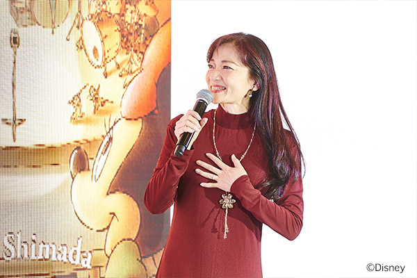 そして大きな拍手に迎えられ、スペシャルゲスト・島田歌穂が登場。11月20日(水)にリリースされた自身初のディズニー公式カバーアルバム『島田歌穂・シングス・ディズニー』に込めた想いなどを語ったトークタイムに続いて、いよいよ「ウェルカム・トゥ・クリスマス(2024)」の歌唱へ。