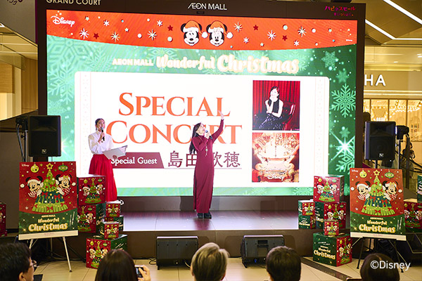 2024年12月7日(土)、イオンモール幕張新都心にて「イオンモール クリスマス Special Concert」が開催され、スペシャルゲストとして島田歌穂が出演。11月20日(水)にリリースされたディズニー公式カバーアルバム『島田歌穂・シングス・ディズニー』の中から「ウェルカム・トゥ・クリスマス(2024)」を歌唱し、集まったゲストを感動で包み込みました。
