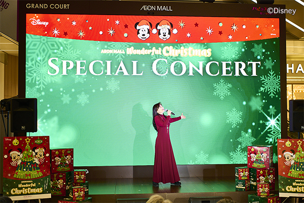 「イオンモール クリスマス Special Concert」は、全国のイオンモールで開催中の、ディズニーをテーマにしたクリスマスプロモーション企画『イオンモール Wonderful Christmas』を記念した、1日限りのスペシャルなクリスマスコンサート。ミッキーマウスやミニーマウスをはじめとするディズニーのキャラクターの装飾が施され、クリスマスの雰囲気あふれるイオンモール幕張新都心の館内で、ディズニーソングやクリスマスソングが演奏されました。
