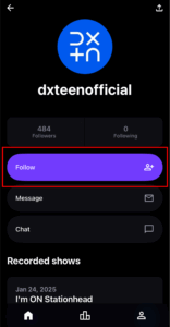 ▶︎ Stationheadトップページ右上の「?」から「dxteenofficial」を検索