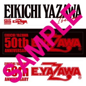 封入特典には誰もが目にしたことのあるE.YAZAWAロゴにソロ50周年ロゴがあしらわれたバンパーステッカー3種封入!