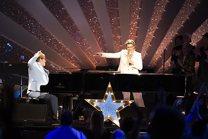 コラボレーション・アルバム『天使はどこに』を完成させたエルトン・ジョンとブランディ・カーライル。4月にアメリカのCBS、イギリスのITVでテレビ・スペシャルとして放送されるイベント“An Evening With Elton John and Brandi Carlile”が、ロンドンのパラディアム劇場で催された。ライブ前に、エルトンとブランディとの対談を加えた2本立てメニューで、アルバム購入予約をしたファンの一部が観客として会場を埋めた。