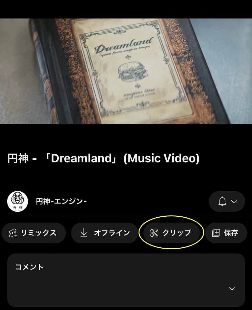 円神 - 「Dreamland」(Official Video)を再生し、クリップしたい箇所を見つけます。