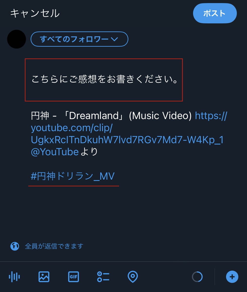ハッシュタグ「#円神ドリラン_MV」と、感想をいれてX(旧Twitter)にシェアしてください。