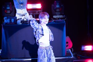 そこでは、1人1人が別々に答えているにもかかわらず、全員がポジティブに、そして決してあきらめることなくどんな壁が立ちふさがろうとも前に進む決意に満ちていて、心強い。さらに6人は、“そう思えたのは、MU3Eの存在がいるから”と、口をそろえて話す。続く「MU3Eの存在とは」と聞かれると、TOYは「自分が活動している唯一の意味」、SOLは「いないといけない、必要な存在」、そしてKYOは「一緒に夢を見る存在」と発言。さらにENJINの存在を聞かれるとHYUGAは「人生の中で、約束をしなくてもいつでも会える仲間」、RYONOは「アットホームな場所」、A.rikは「ご飯みたいな存在」と独特な感性で、でも、何よりも大事だと言うことをしっかりと言葉として残した。その言葉たちをかみしめていると、カジュアルな衣装に着替えたENJINが再登場し、デビューシングルであり、気持ちを言葉にして伝える大切さを歌う『Say your name』を披露。一転、TOYの「みなさん楽しんでいきましょう!」の声を合図に、『扉』がスタート。ペンライトが揺れ会場が一つになっていく。その姿を嬉しそうに見つめるメンバーそれぞれの表情がとても印象的だ。途中でSOLがA.rikの肩を組んだり、KYOがRYONOをバックハグして歌うシーンも。ワチャワチャと楽しむ姿も、とても彼ららしい。そのままの空気感で疾走感あふれる『KOTONOHA』で盛り上げた後、KYOがDJブースに。少々の機材トラブルも持ち前の明るさで乗り越え、何事もなかったかのようにこの日のために用意してきた『We are ENJIN』と『OBENTO~お弁当の歌~』のRemixで会場を一気にダンスフロアに変えていく。途中でメンバーが再登場するとあらためて自己紹介でコール&レスポンスで盛り上げ、後半がスタート。『Candy poppin』や『Superb Love』、『Perfect Circle』など、キャッチーでピースフルな空気が流れる楽曲で会場中を多幸感で包み込むとKYOが「最高です皆さん!」ととっても嬉しそうにスマイル。さらに、TOYは「嫌なことも辛いことも全部忘れて、他では出せない自分を出してください! 僕らは受け止めるし、それ以上で返すから、みなさん力を貸してほしいです!」と『Treasure』の振り付けを練習しようとすると、ライブをまち続けていたMU3Eが完璧な振り付けを披露し、メンバーたちは感動。この曲で歌う“ひとりじゃないよ”“そばにいるよ”というメッセージが、まるでMU3EからENJINに送られたような、素敵な瞬間だった。さらに『Peace summer』で加速させ、アクロバットも飛び出した『overheeeeeeeeeat』、『Dreamland』とラストスパートで一気に温度を上げると、ラストの曲『MERRY GO ROUND』で本編は終了。