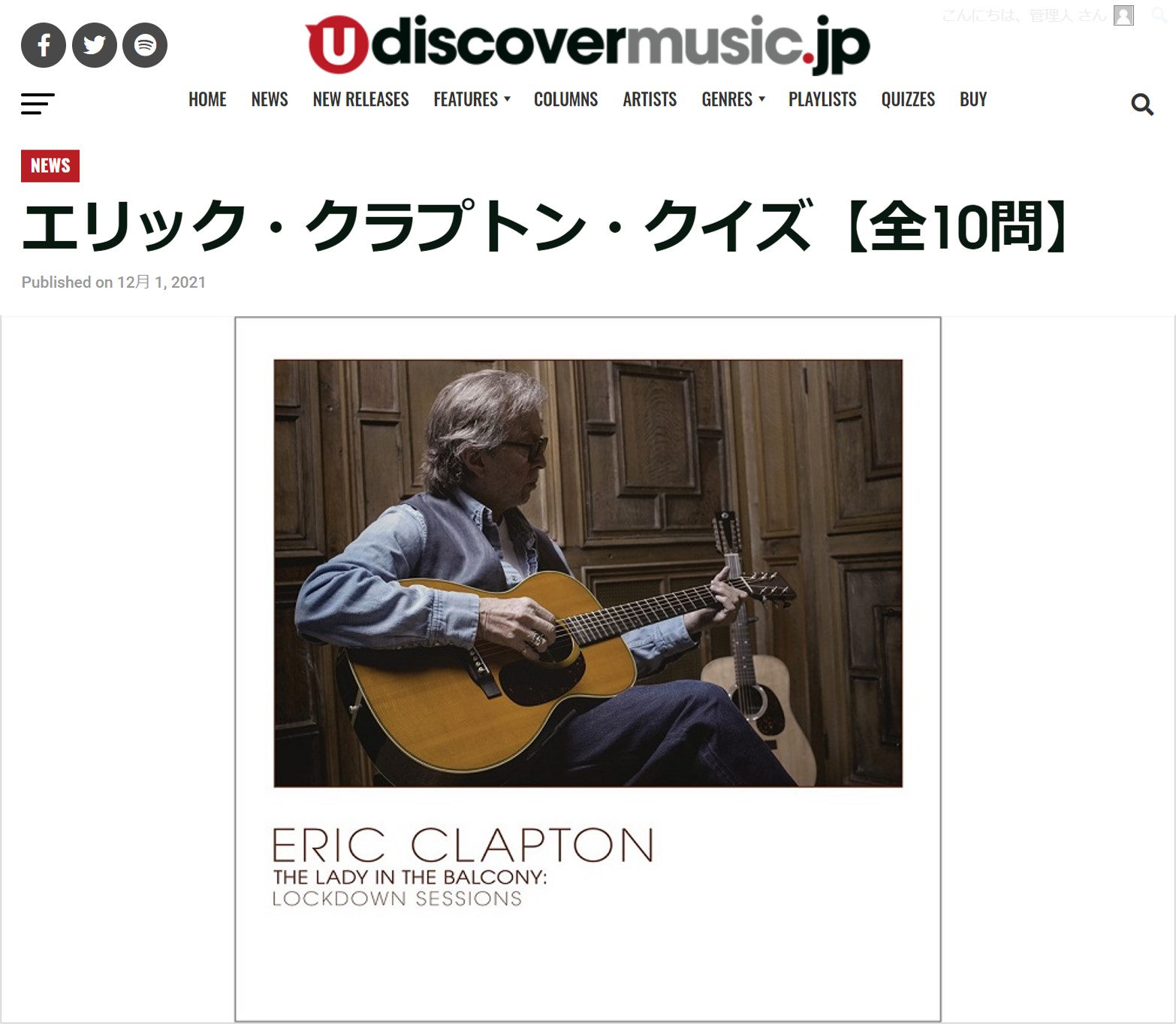 NEWS ALL TOPICS MEDIA LIVE/EVENT 2025.04.04 TOPICS エリック・クラプトン アナログ3タイトル価格表記について 2025.02.10 TOPICS 日本プレス盤LPと紙ジャケットCDを4月9日に発売! 2025.01.01 TOPICS 「Layla」が三菱自動車工業株式会社 企業CM楽曲に決定! 2023.04.11 TOPICS 日本武道館公演を記念して4/14(金)21時よりYouTubeにてミュージック・リスニング・パーティーの配信が決定 2023.03.22 TOPICS 来日公演の予習用のプレイリストが公開 2022.03.14 TOPICS 第36回日本ゴールドディスク大賞「ミュージック・ビデオ・オブ・ザ・イヤー(洋楽)」を受賞! 2021.12.02 TOPICS エリック・クラプトン・クイズが公開! 2021.11.12 TOPICS <WEB掲載>UDO 2021.10.08 TOPICS 11月12日発売『レディ・イン・ザ・バルコニー:ロックダウン・セッションズ』より「ゴールデン・リング」の映像が公開! 2021.09.24 TOPICS 11月12日発売『レディ・イン・ザ・バルコニー:ロックダウン・セッションズ』から「アフター・ミッドナイト」が公開! 12341234