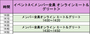 【イベントA<メンバー全員 オンラインミート&グリート>】