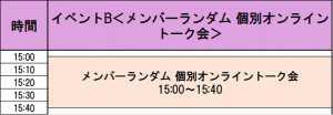 【イベントB<メンバーランダム 個別オンライントーク会>】