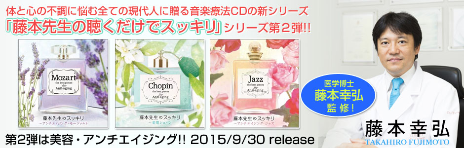 女性誌「美st」で《2013年美st“美容医療ドクター大賞”》第1位に選ばれた人気ドクター、藤本幸弘先生による美容とアンチエイジングに関する様々な知識をお届けする特別セミナーを開催します。今回はとりわけ美と音楽との関係について紹介します。音楽を聴くことで、気持ちが高揚し、前向きな気分になり、自律神経を活性化、血液中の女性ホルモンUpをはかり、アンチエイジングや美肌へと導きます。