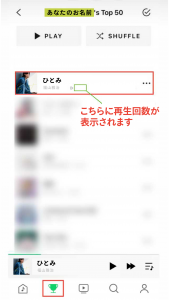 ②LINE MUSICランキングページの「(あなたのお名前)’s Play TOP 50」より、自分が何回再生しているか確認し、スクリーンショットを撮る。