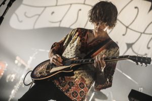 メンバーが一人一人登場すると、大歓声が沸き起こり、観客は早くもGLIM SPANKYが放つ音にノリたがっているようだ。1曲目は「THE WALL」。圧倒的な登場を感じさせる重厚感のある楽曲に早くも場内はヒートアップ。続いて「BIZARRE CARNIVAL」「The Trip」と、アルバムと同じ流れの構成で披露し、大いに盛り上げた。