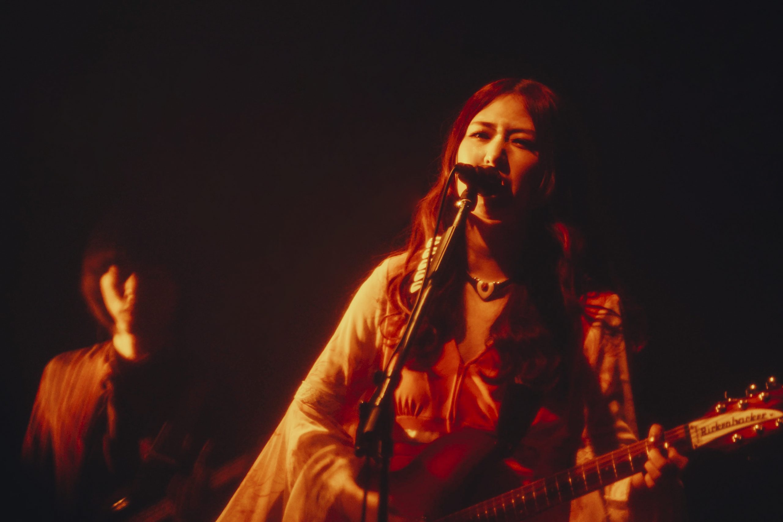 次のゾーンは亀本が「前半からやりすぎた(笑)」と冗談交じりで話していたほどに弾きまくる。インディーデビューのミニアルバム『MUSIC FREAK』から、ライブでは亀本の全力で気ままなギターソロから始まるパターンが定番になっている「ダミーロックとブルース」、そして「Flower Song」へと、プリミティブなギターサウンドが炸裂。そしてGLIM SPANKYのレパートリーのなかでも最大のアンセム「大人になったら」を早くもここで演奏したことは、今となってはどこに何の曲を入れても問題ない、純粋に表現したい世界感を向き合ってライブを構築できる今の二人とサポートメンバーの耐久力を象徴しているように思えた。