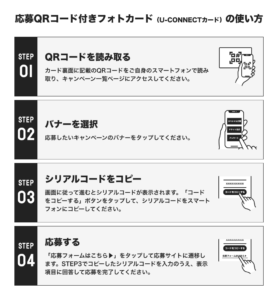 ※理由を問わず「応募QRコード付きフォトカード」の再発行等はいたしませんので紛失にはご注意ください。