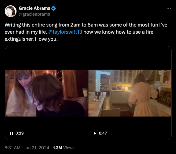さらに、グレイシーもテイラー・スウィフトと一緒に「us. (feat. Taylor Swift)」の制作した時のビハインド動画をSNSに公開しました。