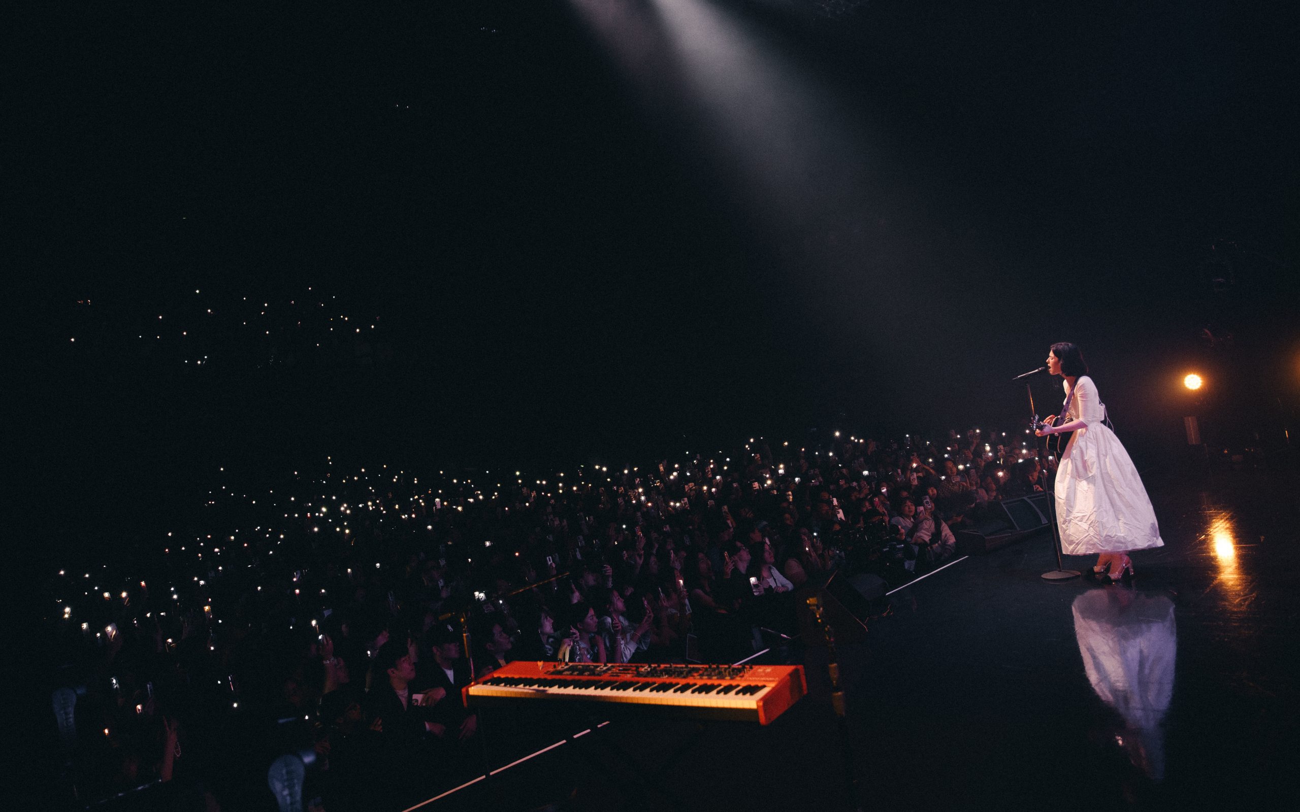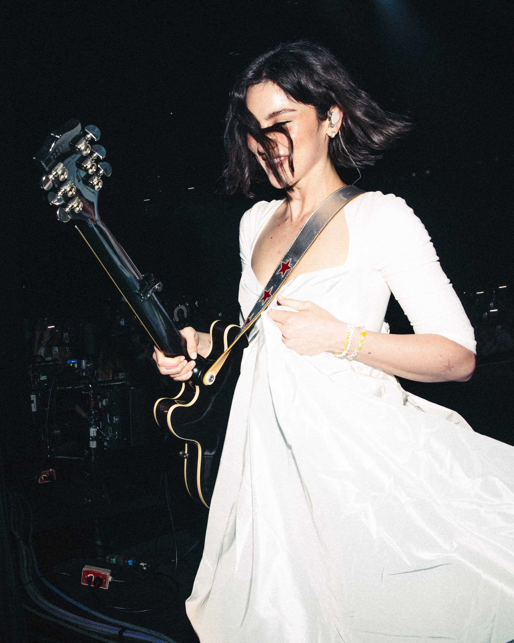 本公演は昨年9月にアメリカで始まり、今年に入ってヨーロッパ、続いてアジアに舞台を移した、『The Secret of Us Tour』の一環で実現したもの。ご存知の通り、道中でシングル『That’s So True』がキャリア最大のヒット(全米HOT100最高6位)と化して飛躍を遂げたグレイシーの姿を目撃するべく、Zepp Hanedaには約3,000人が詰めかけた。大多数は若い女性で、白いリボンで髪を飾っている人が目立つ。というのも、まだ髪が長かった数年前、グレイシーがいつも白いリボンを付けてステージに立っていたことからファンの間では一種のシンボルとして定着し、世界中どこでも彼女のライヴの会場ではたくさんのリボンが見かけられるようになったのだとか。実際、トラディショナルで、ガーリーで、すごく彼女らしい。-scaled.jpg)