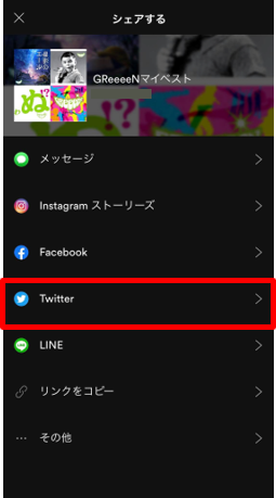 作成したプレイリストをTwitterにシェアをお願い致します。