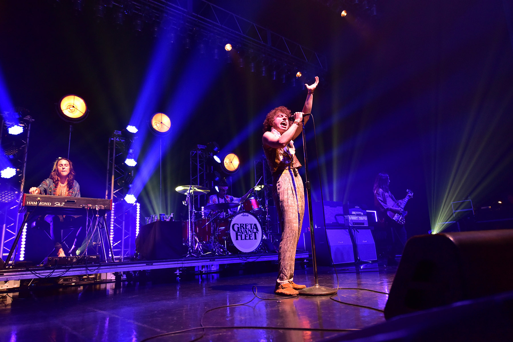 1曲目は2017年3月にリリースされたデビュー・シングル「ハイウェイ・チューン」。2曲目の「エッジ・オブ・ダークネス」では曲の終盤にジャムが展開し、アルバム・ヴァージョンよりはるかに長い演奏でオーディエンスを引き込みます。ジョシュのパワフルな高音ヴォーカルはクリアに響き渡り、ステージ上での彼は大きな存在感を放つ。ジェイク・キスカはまるで永遠に続くかのように ギターを弾きまくり、ベースのサム・キスカは曲によってはオルガンも弾き、ダニー・ワグナーはドラム・ソロを披露するなど、彼らがいかに優れたプレイヤーたちかということも証明されていきました。シングル曲の「ホエン・ザ・カーテン・フォールズ」やハウリン・ウルフのカヴァー「Evil」も含め、全10曲を約80分間に亘って演奏し、直球のクラシック・ロックを今の感性でダイナミックに、そしてフレッシュに鳴らしました。