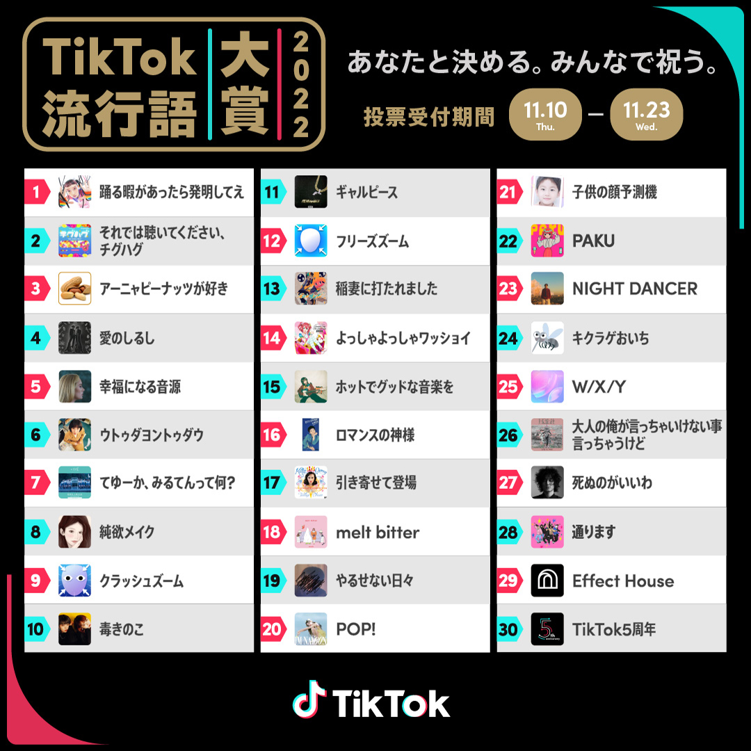そして本日からTikTokアプリ内にて「TikTok流行語大賞2022」ユーザー投票がスタートし、