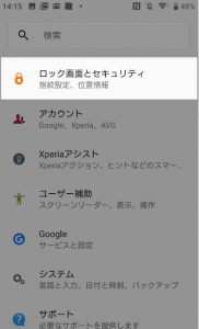2.「ロック画面とセキュリティ」を選択