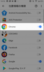 6.「Chrome」の位置情報をONにする
