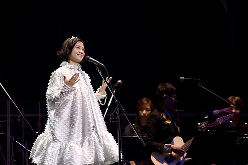 コンサートの終盤には、邦楽カヴァー・アルバム『恋愛小説2〜若葉の頃』収録のキャンディーズ「年下の男の子」を、振り付きで披露したり、アイルランド音楽グループのtricolorを迎えて「空と糸 -talking on air-」を歌ったりと、趣向を凝らした内容で場内は大いに盛り上がった。そして本編ラストは、原田のギター弾き語りから始まる「くちなしの丘」。ギターは『音楽と私』のレコーディングにあたって練習したそうで、自身の歌声さながらの柔らかな響きが、会場を包み込んだ。