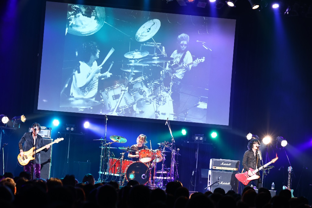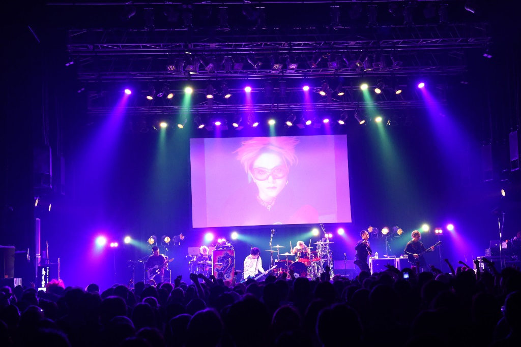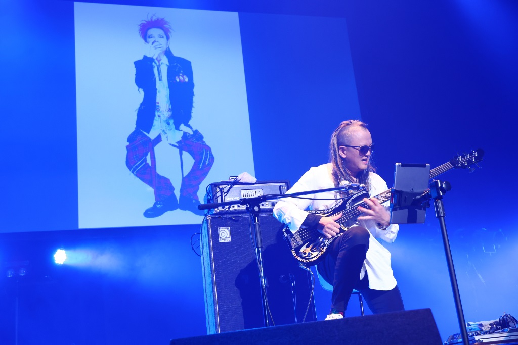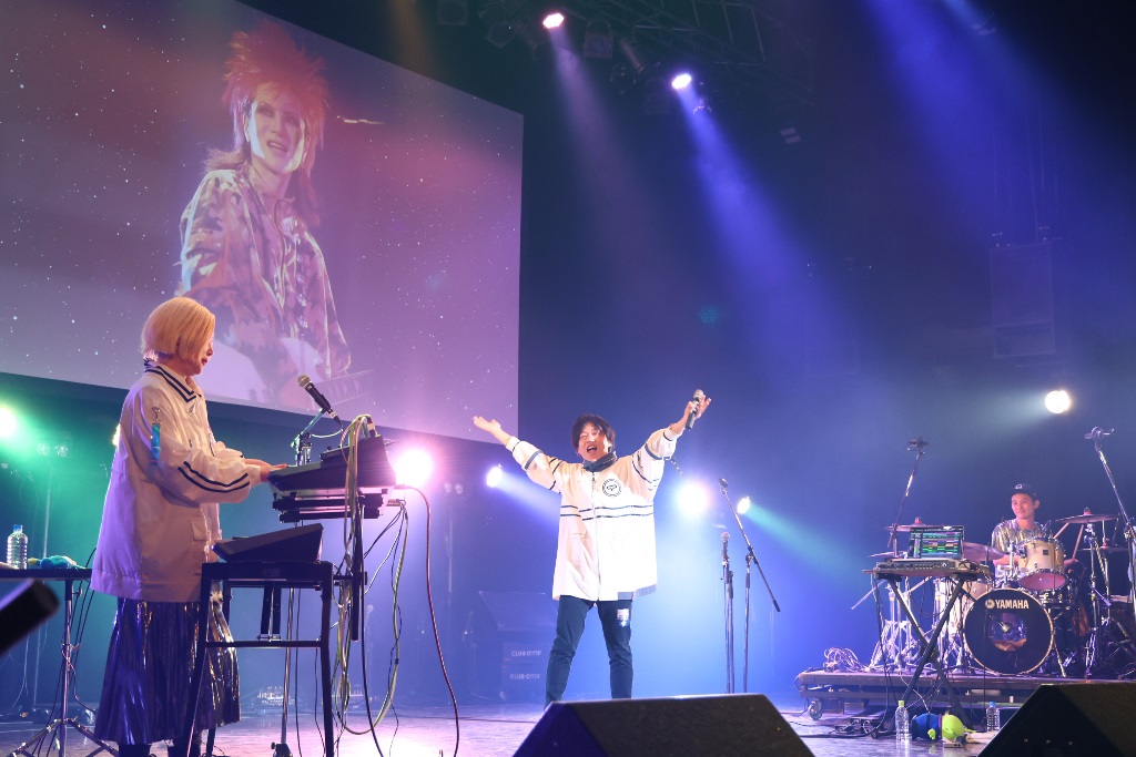 そして、いつも元気パワーがいっぱいのSPEED OF LIGHTSの登場である。ヴォーカルのCUTTが参加していたバンドshameがhideに見出されてデビューしたことがきっかけで、2016年に始動したSPEED OF LIGHTSもこのイベントの常連である。「みんなの前でこの曲を歌いたくて、たくさんの思いをこめて、作ってきました。聞いてください」というMCで始まった新曲「Our New World」は、彼ららしい爽やかな中にも熱さを感じる楽曲だ。バックスクリーンに英語の歌詞と日本語訳を投影していて、彼らがこの曲にこめた想いをしっかり伝えたいという気持ちが伝わってくる。ゲームの映像を使って観客に手拍子参加させる「Cosmic Rolling」、SPEED OF LIGHTS風に大胆にアレンジされたX JAPANの「Joker (Alien Chorus ver.)」と曲ごとにアイデア満載で、さまざまな表情を見せてくれるのが楽しい。最後は満点の星空をバックにしたスクリーンのhideが見つめる中、「Birth Everywhere」でしっとりと幕を下ろした。