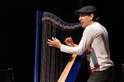 最初のMCで上原は、「今年も世界津々浦々ツアーをしてきましたが、一緒に旅をしてくれた愉快な相棒を紹介します」とエドマールを紹介。エドマールもそれを受けて「また東京に戻ってこれて嬉しいです」と日本語でMC。続いて披露された「フォー・ジャコ」は、伝説のベーシスト、ジャコ・パストリアスのグルーヴを表現したいと書かれたエドマールのオリジナルで、エドマールはベースラインやハーモニーなどジャコを思わせるサウンドとグルーヴをハープから繰り出す。ハープの概念を覆す驚異的なプレイだった。一方の上原も、ピアノの弦の上にシェイカーを乗せ、ハープシコードのようなサウンドで熱いソロを取る。1台のピアノとハープからとは思えない、色彩豊かな音を生み出す二人のパフォーマンスに、会場のヴォルテージは早くも最高潮になった。