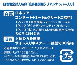 ※下記シールが貼付された商品(初回生産分のみ)に、応募URLと抽選用シリアルナンバーが記載された応募用紙が封入されております。
