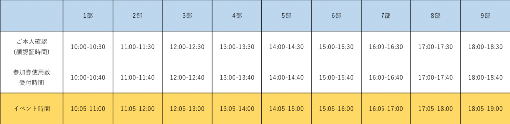 <【追加開催】「オンライン握手会」部制スケジュール>