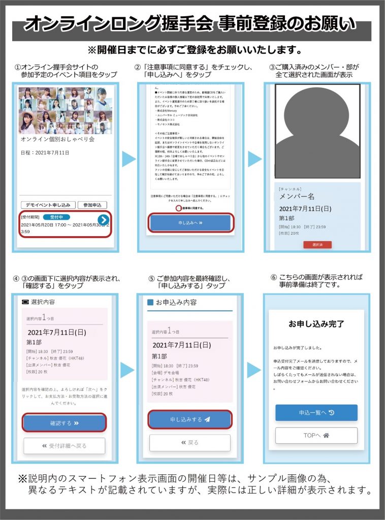 今回の「オンラインロング握手会」は、新たなシステムを導入しており、お客様ご当選分の「参加権利」はご購入履歴に基づきましてシステム上で管理させていただいております。