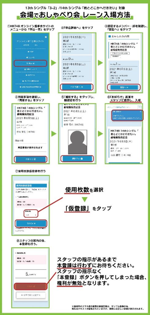 「オンライン握手会申込サイト」への登録は事前にPCなどでお済ませください。