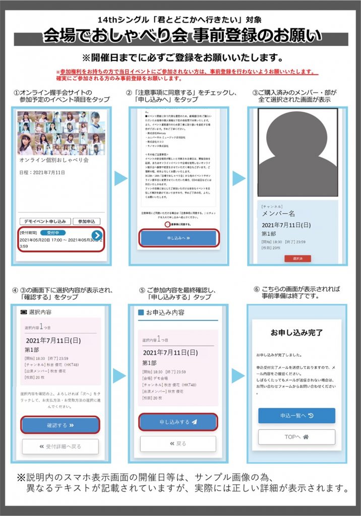 「オンライン握手会申込サイト」への登録は事前にPCなどでお済ませください。