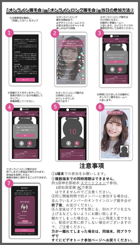 <「オンライン握手会」「オンラインロング握手会」(以下「オンライン握手会」)当日のご参加方法について>