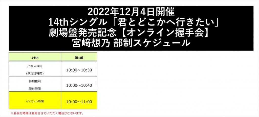 上記の14thシングル受付分を含めた各メンバーのタイムスケジュールは以下となります。