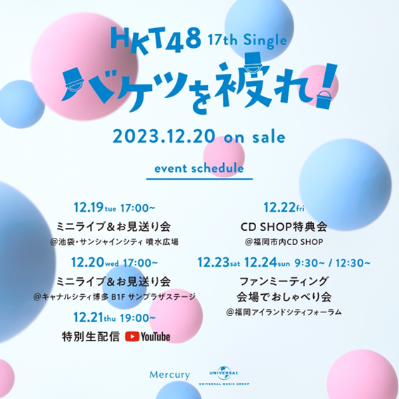 2023年12月20日(水)発売 HKT48 17thシングル「バケツを被れ!」のリリースを記念したイベントスケジュールをご案内いたします。
