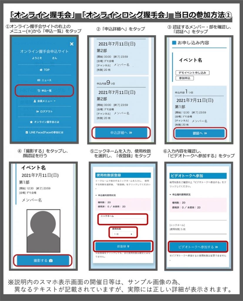 <「オンライン握手会」「オンラインロング握手会」当日のご参加方法について>