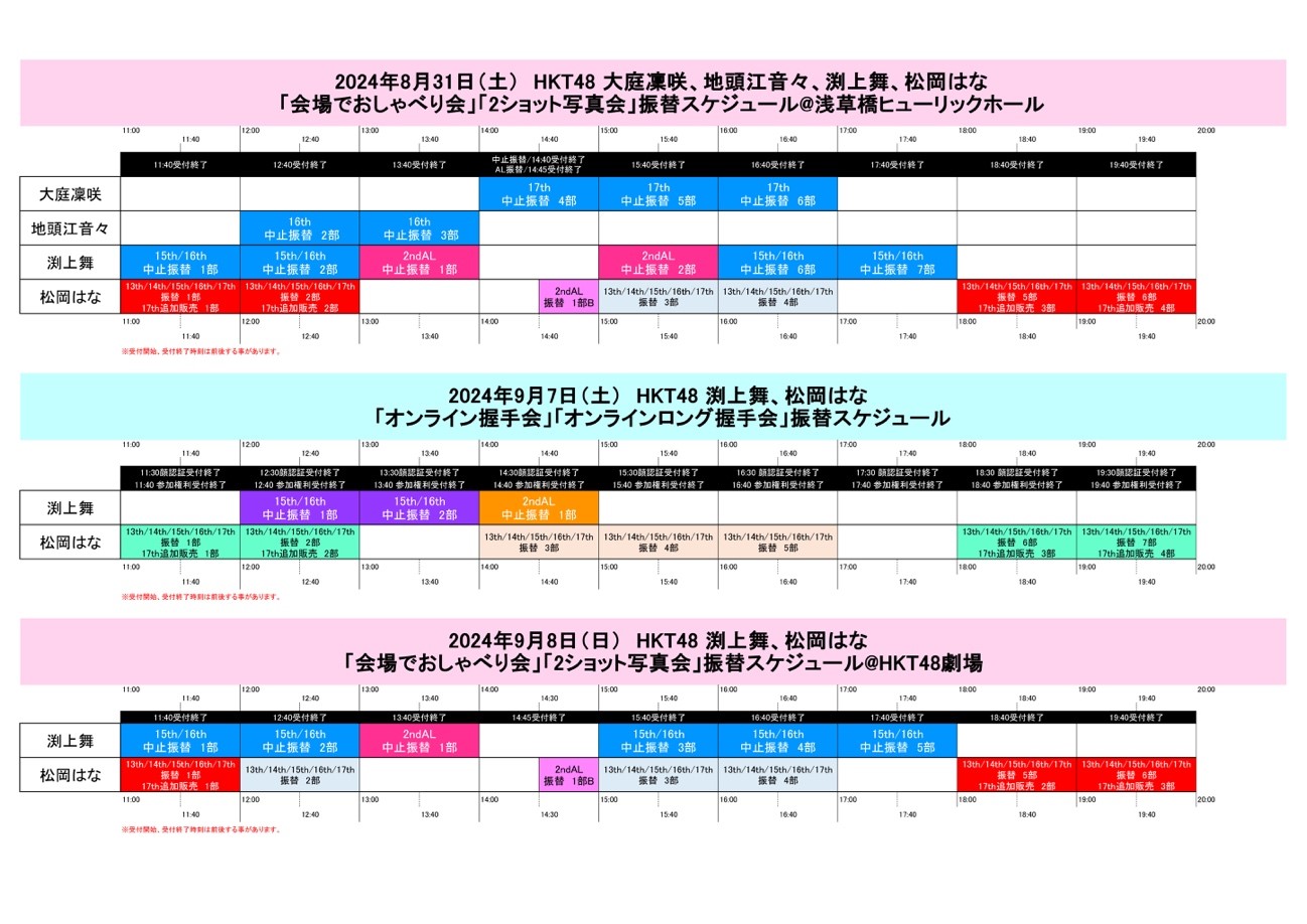 2024年8月31日(土)、9月8日(日)振替開催 「会場でおしゃべり会」「2ショット写真会」、2024年9月7日(土)振替開催 「オンライン握手会」につきまして