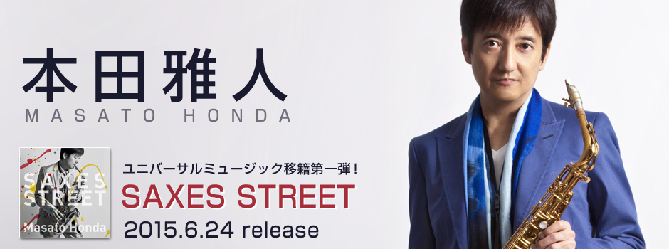 WHAT'S NEW 2015.12.24 LIVE 2016年1月『SAXES STREET』LIVE TOUR 2016 決定! 2015.07.27 MEDIA - MAGAZINE 雑誌『THE SAX』72号に、表紙+インタビュー掲載! 2015.07.03 LIVE 9/21&22、MASATO HONDA『SAXES STREET』LIVE! CHICKEN GEORGE Special開催! MORE