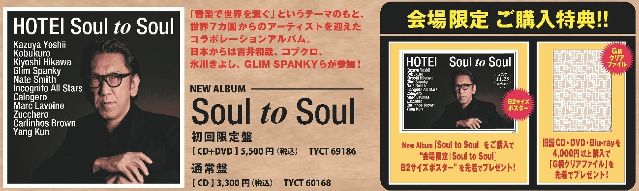 New Album『Soul to Soul』は11月24日(火)より会場にてご購入頂けます。