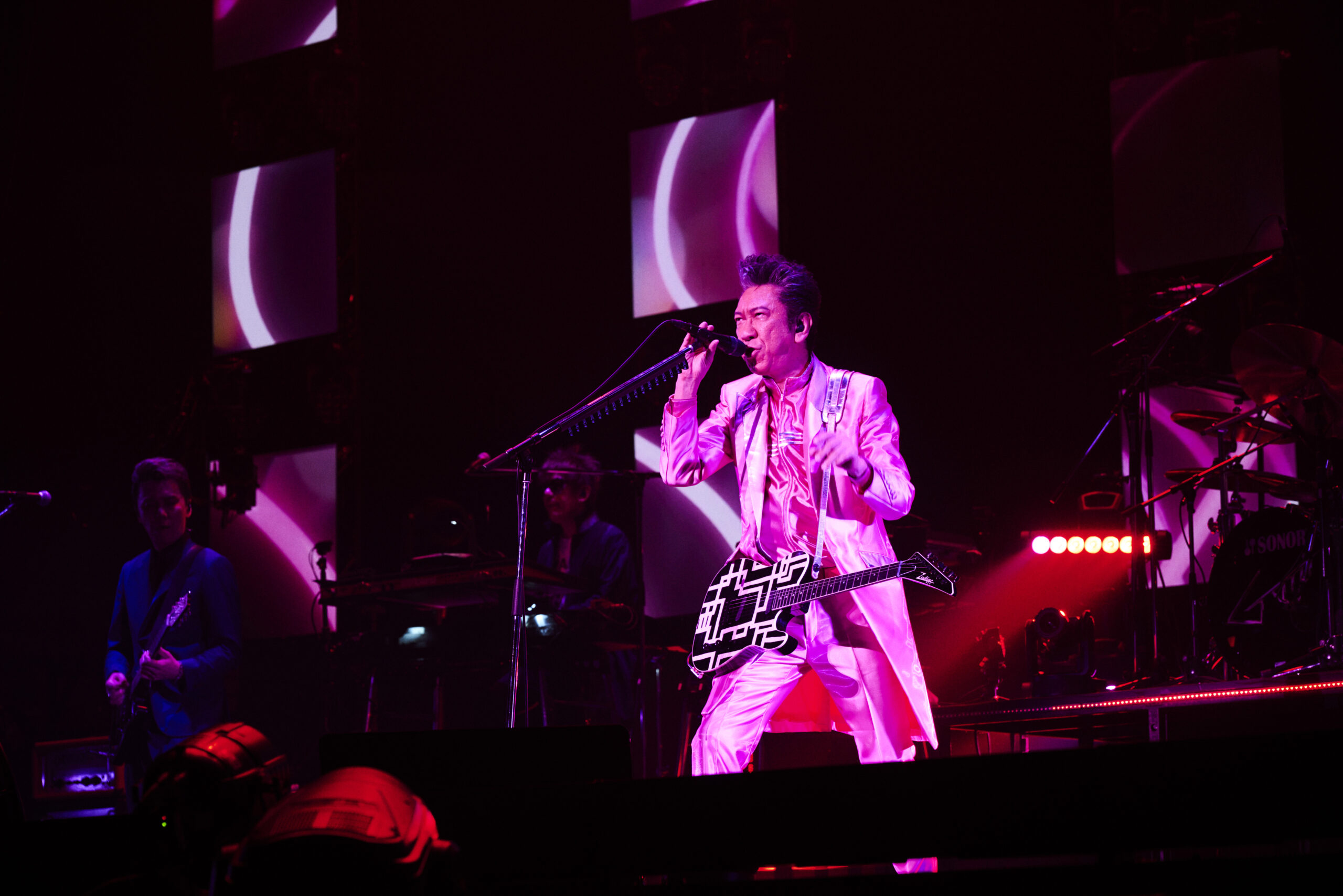 アルバムにも参加し、ツアー初参加となったドラマー山木秀夫をはじめとして、井上富雄(ベース)、黒田晃年(ギター)、奥野真哉(キーボード)、岸利至(プログラミング)というお馴染みの鉄壁メンバーが演奏を支え、会場を熱気と興奮の渦へと誘う、まさに"宇宙一のロックンロールショー"。