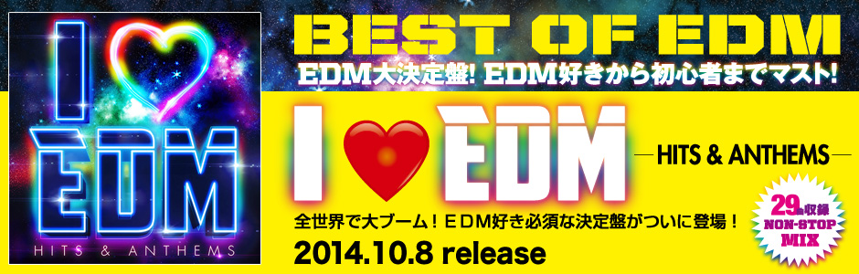 全世界で大ブーム! EDM好き必須な決定盤がついに登場! CD I LOVE EDM - Hits & Anthems - 発売日 2014.10.08 価 格 ¥2,035 (税込) 品 番 UICZ-1565 BUY NOW BUY NOW