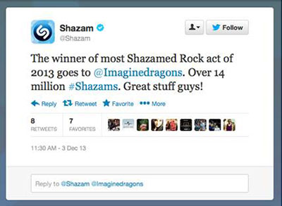 人気音楽検索アプリShazamにて「2013年最も検索されたロック・バンド」に選出 2013.12.04 TOPICS 人気音楽検索アプリShazamにて「2013年最も検索されたロック・バンド」に選出されました!のべ検索回数1,400万回検索! https://twitter.com/Shazam/status/407954929114828800