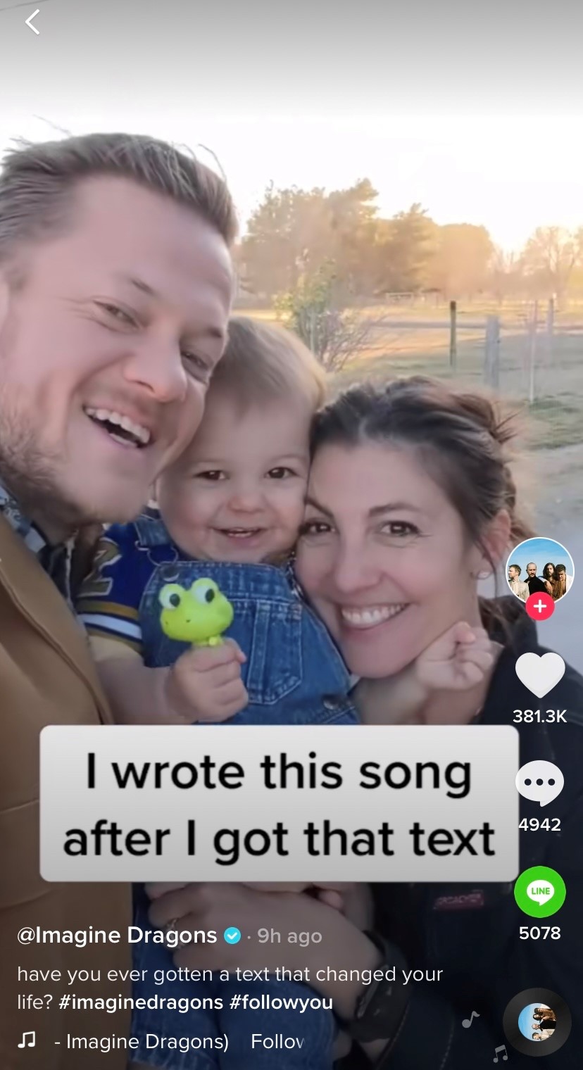 「フォロー・ユー」は、ジョエル・リトル プロデュースのもと制作された、ギターと複雑なアレンジが満載のラブソング。この曲は、ボーカルのダン・レイノルズが彼の結婚生活の転機の時に書いたという曲。離婚届にサインしようとしていたダンのもとに、妻から「あなたを愛するのにあなたを所有する必要はないの」と書かれた一通のテキストメールが届き、彼の心を大きく揺さぶったとのこと。夫婦は離婚を次の週に延期、そして永遠に延期されることとなったのです。公開されたダン自身のSNSで「人生を変えたテキストはありますか?」という冒頭とともに、「そのテキストメールで完全に彼女に対する見方が変わり、まるで初デートの時の感覚になったんだ」と語り、愛する妻と息子も登場しています。